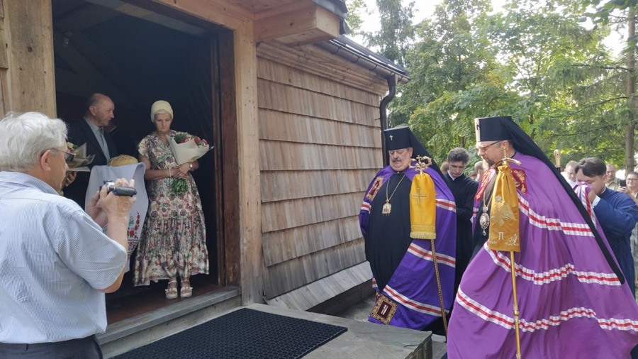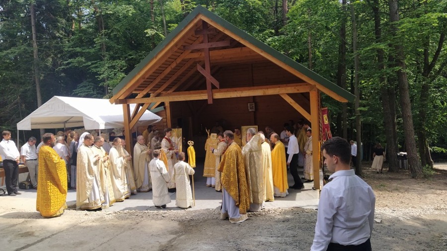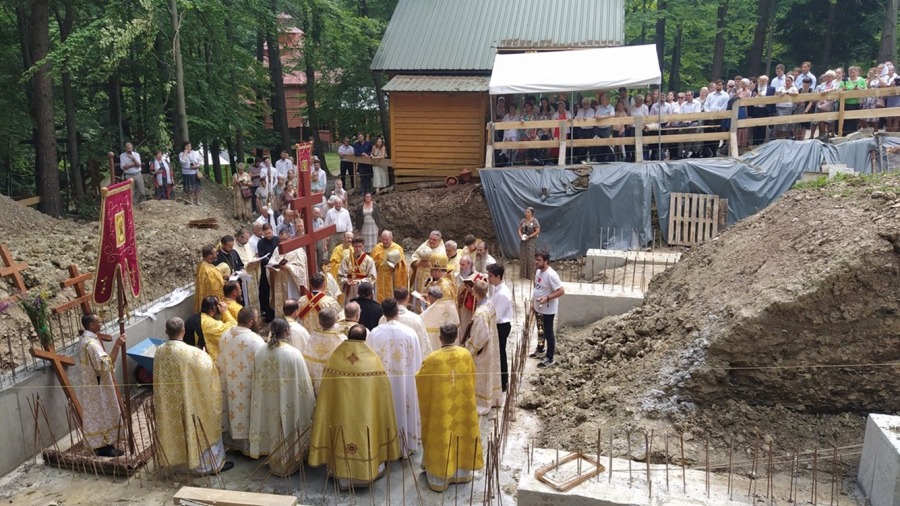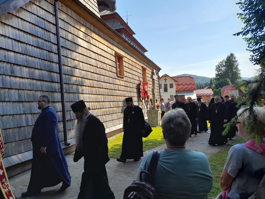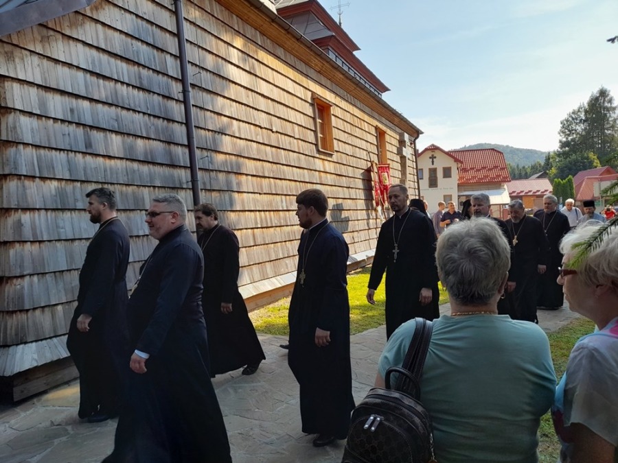 11 lipca o godz. 17:00 nabożeństwem Całonocnego Czuwania w prawosławnej cerkwi w Hańczowej pw. Opieki Matki Bożej rozpoczęły się uroczystości ku czci świętych apostołów Piotra i Pawła. Nabożeństwu przewodniczył arcybiskup Paisjusz w asyście duchowieństwa. Śpiewał męski chór Kliros Diecezjalnego Ośrodka Kultury Prawosławnej ,,ELPIS” w Gorlicach pod dyrekcją o. prot. Jarosława Grycza. W sam dzień święta o godz. 9:00 w cerkwi pw. św. Archanioła Michała w Wysowej-Zdrój powitani zostali arcybiskup Abel oraz arcybiskup Paisjusz przez Radę Parafialną wraz z proboszczem Metodym Ihumenem prawosławnego monasteru Opieki Matki Bożej w Wysowej-Zdrój. Po krótkiej modlitwie ruszyliśmy razem na górę Jawor, gdzie o godz. 10:00 rozpoczęła się św. Liturgia. Tradycyjnie pielgrzymce towarzyszy przez cały czas krzyż prawosławny niesiony przez Bractwo, który to następnie jest na stałe wkopany na górze Jawor na terenie naszej działki. W tym roku do połomników Bractwa dołączyli się pielgrzymi z parafii prawosławnej z Zimnej Wody Diecezji Wrocławsko-Szczecińskiej na czele z proboszczem o. Adamem Horbalem. Wierni parafianie z Zimnej Wody podążali na górę również z prawosławnym krzyżem, który to przywieźli ze sobą na Łemkowynę. Wśród bardzo licznej zgromadzonej ilości wiernych na uroczystości nie zabrakło również parafian z naszej cerkwi prawosławnej z Lubina. Przy pięknej słonecznej pogodzie rozpoczęła się św. Liturgia. Śpiewał chór z cerkwi prawosławnej z Krynicy wzmocniony przez chórzystów z innych parafii pod dyrekcją p. Piotra Trochanowskiego. Należy wspomnieć, że od samego początku wchodzenia na górę Jawor i podczas uroczystości religijnych towarzyszył nam wyraźny głos-śpiew ptaków. Było to bardzo wzruszające i niezwykłe. W ogóle – można tak wyrazić, że ścianami cerkwi (św. Liturgia była sprawowana na ołtarzu polowym) były drzewa, soczysta zieleń, którą usiana jest cała góra Jawor. Te niezwykłe miejsce, wyjątkowe uroczystości religijne, które trwały kilka godzin sprawiły, iż wierni nie czuli wcale zmęczenia, a było bardzo ciepło (ponad 30st. C) a ludzie trwali w modlitwie i w skupieniu. Bardzo dużo osób w różnym wieku przystąpiło do św. pryczastia. Podczas nabożeństwa do wiernych z słowem pouczającym zwrócił się arcybiskup Abel, który to podkreślił jakże ważna jest wiara prawosławna wśród łemkowskiego narodu. Bezpośrednio po zakończeniu św. Liturgii arcybiskup Paisjusz w asyście duchowieństwa dokonał obrzędu poświecenia kamienia węgielnego po budowę nowej cerkwi prawosławnej. Do fundamentów nowej świątyni został złożony kamień węgielny z relikwiami św. męczenników Betlejemskich i św. Maksyma Gorlickiego. Złożono również podpisany przez arcybiskupów, księży, projektanta i konstruktora cerkwi akt erekcyjny. Nowa budowana cerkiew pw. świętych Apostołów Piotra i Pawła i Jaworskiej ikony Matki Bożej będzie najwyżej położoną cerkwią prawosławną w naszym kraju (723 m n.p.m.). Oczywiście wchodzi w skład i posiadanie Diecezji Przemysko-Gorlickiej PAKP. Zgodnie ze słowami arcybiskupa Paisjusza: będą się w tej cerkwi odbywać regularne nabożeństwa – tą świątynię ofiarujemy jak pomnik 3 jubileuszy – 100-lecia Autokefalii PAKP (1924-2024r.), Zjawienia się Matki Bożej na św. Górze Jawor (1925-2025r.), odrodzenia-powrotu Łemków do wiary ojców Świętego Prawosławia (1926-2026r.). Na zakończenie jaworskich uroczystości arcybiskup Abel przekazał wWadyce Paisjuszowi i zebranym wiernym błogosławieństwo i pozdrowienia w związku z tym wielkim cerkiewnym wydarzeniem od Zwierzchnika PAKP Jego Eminencji Metropolity Sawy. Władyka Abel wspominając jak wielkiego dzieła dokonała Diecezja Przemysko-Gorlicka na czele z władyką Paisjuszem życzył Bożego błogosławieństwa i opieki Matki Bożej dla szczęśliwego i szybkiego zakończenia budowy nowej cerkwi. Arcybiskup Paisjusz w mowie końcowej dziękował Metropolicie Sawie za wszystko, za pomoc i błogosławieństwo a arcybiskupowi Ablowi za przybycie i przewodniczenie św. Liturgii podczas jaworskich uroczystości. Następnie Władyka dziękując wszystkim za tak liczne przybycie pątnikom z różnych regionów – parafii kraju i za granicy, przybliżył wiernym rys historyczny cyt: … ,,zmagań i przeciwności losu jakie trzeba było przejść, kiedy przez okres 9 lat staraliśmy się o pozwolenie na budowę. Na każdym kroku odczuwaliśmy i odczuwamy działanie złego ducha, który nie może ścierpieć tego, że dzieło ku chwale Bożej rozpoczyna się w pokorze z wiarą i modlitwą. Za apostołem Pawłem możemy dziś powiedzieć – moc w słabości się doskonali’’… Tradycyjnie kilkakrotnie zabrzmiało Mnohaja Lita dla duchowieństwa, solenizantów – noszących imiona Piotr i Paweł, wszystkich ludzi wspomagających jakże cudowne dzieło – budowy nowej cerkwi prawosławnej. Po ucałowaniu ikony świętych apostołów i krzyża wszyscy wierni uczestniczyli w wspólnej agapie przedłużając świętowanie na św. górze Jawor.