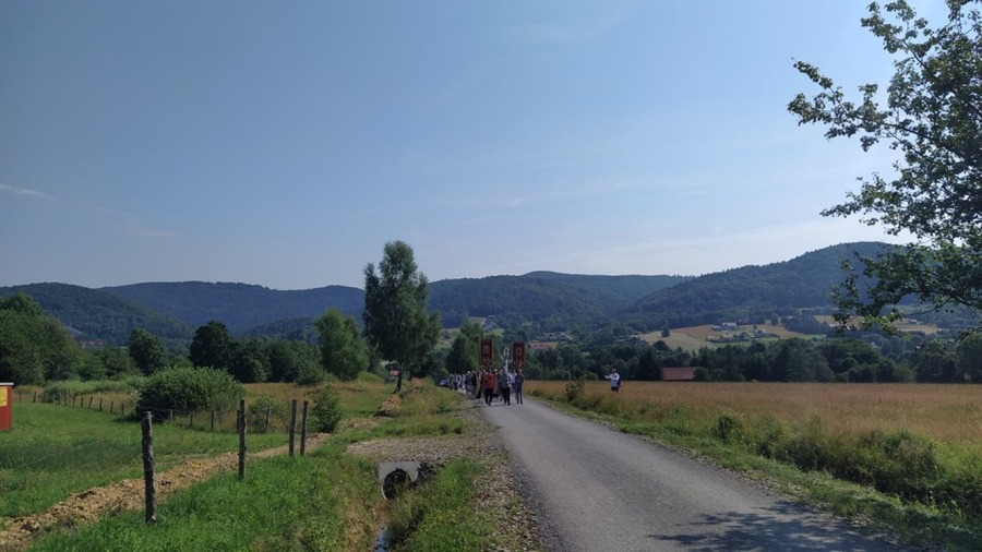 Jak na wstępie pisałem święto apostołów Piotra i Pawła jest bardzo uroczyście celebrowane na górze Jawor. Tradycją jest, że wymienione uroczystości religijne poprzedza piesza pielgrzymka organizowana przez Bractwo Młodzieży Prawosławnej Diecezji Przemysko-Gorlickiej. W tym roku to już 34 pielgrzymka. Młodzież 10 lipca rozpoczęła zmagania duchowe od miejscowości Czarne (Чорнe), gdzie przy pomniku św. Maksyma Gorlickiego i Ofiar Thallerhofu (1914-1917r.) sprawowana była po raz pierwszy w historii św. Liturgia. Kolejne miejscowości na trasie pielgrzymki to: Долге, Радоцина, Липна, Ждиня, Реґϵтів, Шквіртне, Ганчова i Высова (Długie, Radocyna, Lipna, Zdynia, Regietów, Skwirtne, Hańczowa i Wysowa-Zdrój).